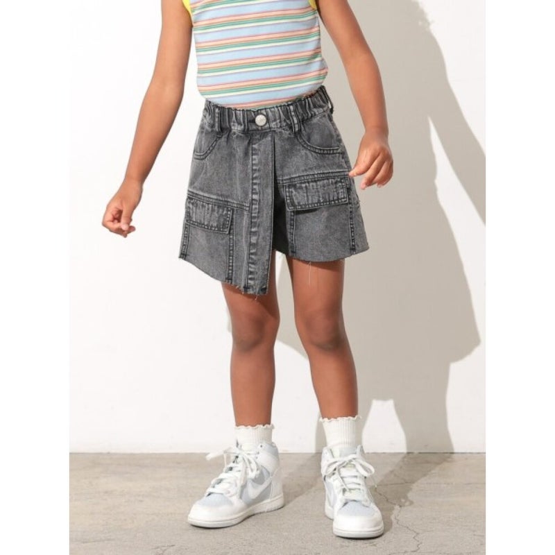 5. [オーシャン&グラウンド] デニムアシンメトリースカートパンツ ブラック(BK)