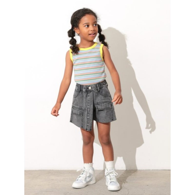 [オーシャン&グラウンド] デニムアシンメトリースカートパンツ ブラック(BK)