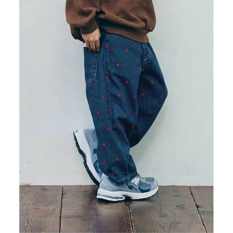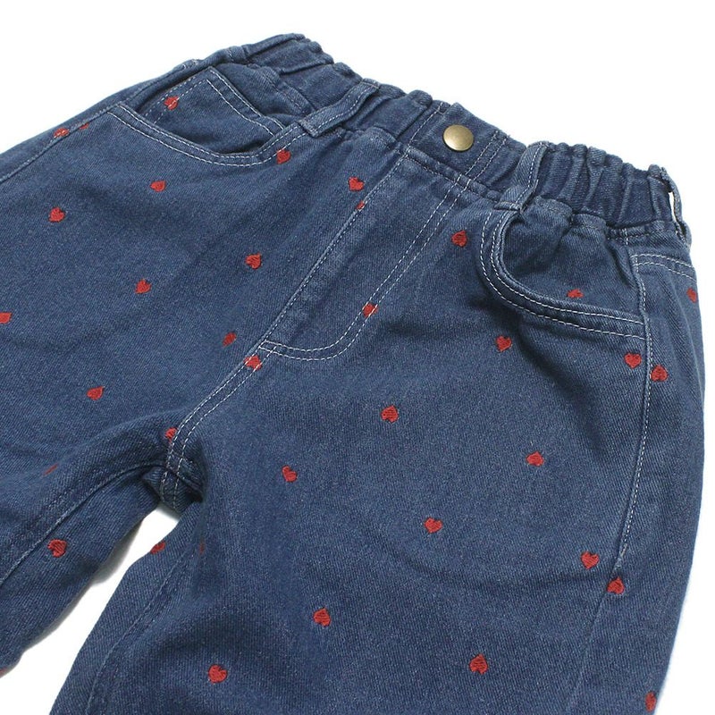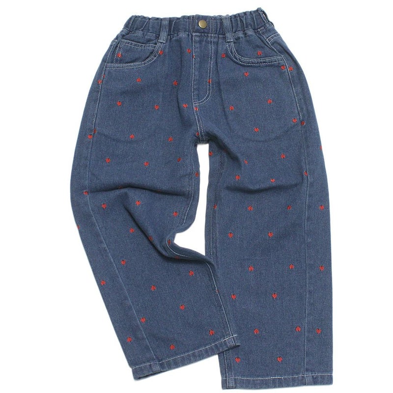 “ピードットプルミエ”のハート刺繍のワイドストレートジーンズ