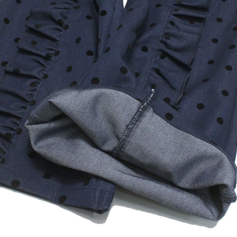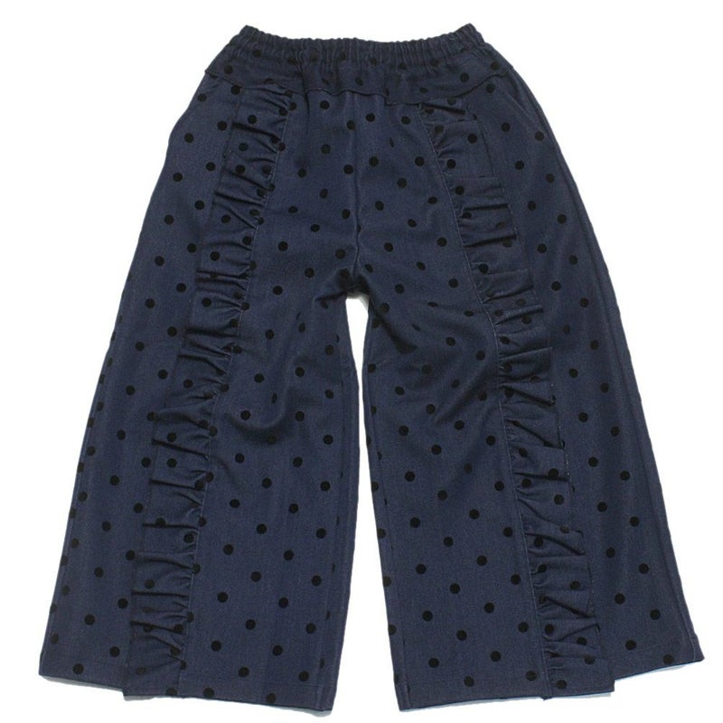 “ユニカ”のフロッキードットフリルワイドパンツ