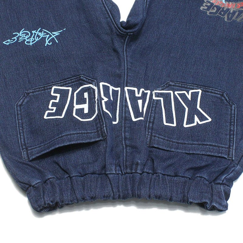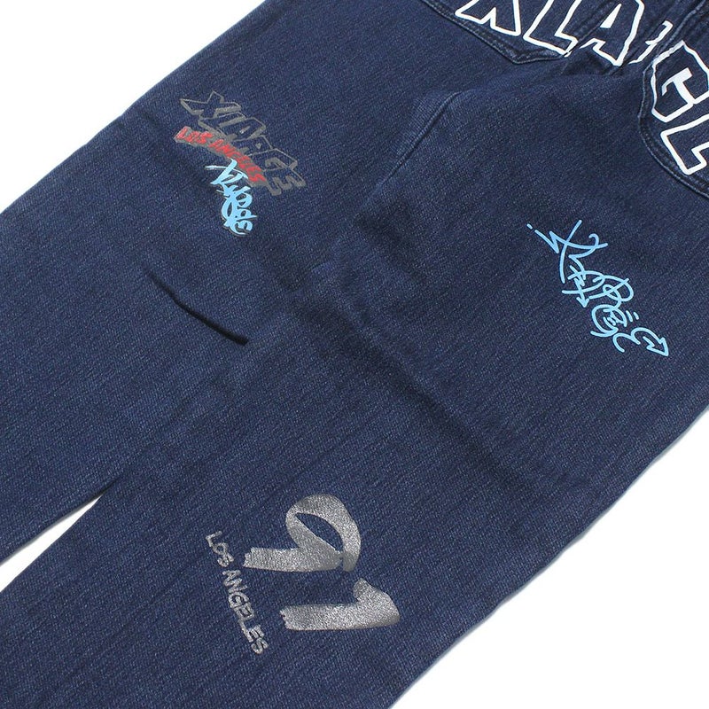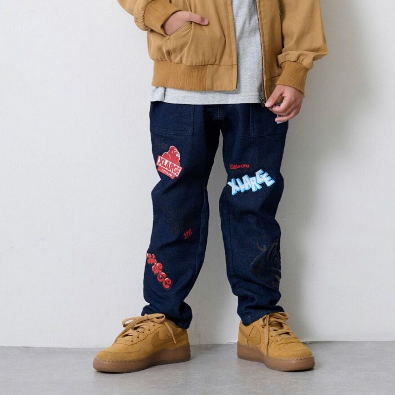 “エクストララージキッズ”の総柄カットデニムテーパードパンツ