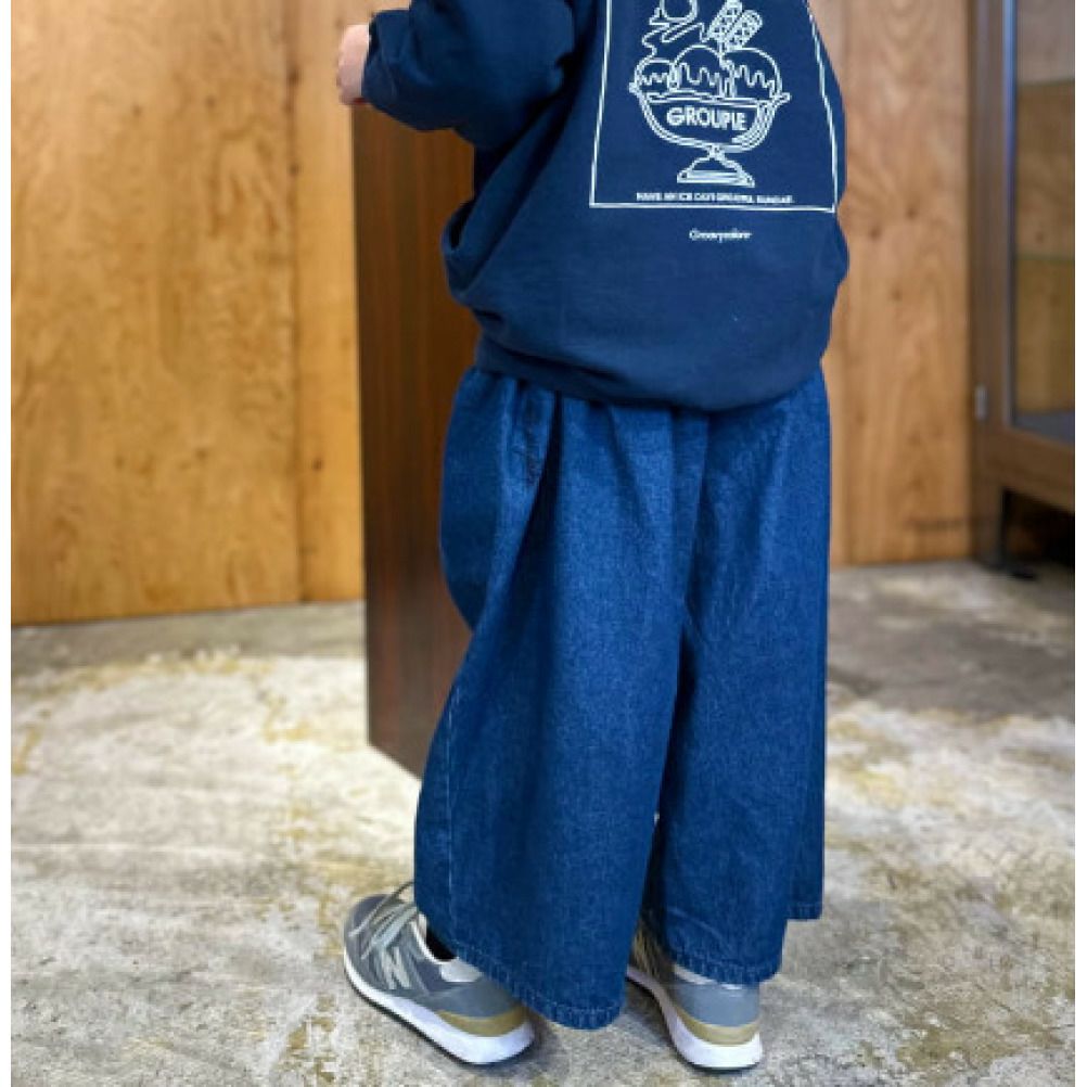 [グルーヴィーカラーズ] デニム タックボリューム ワイドPN 4NV紺