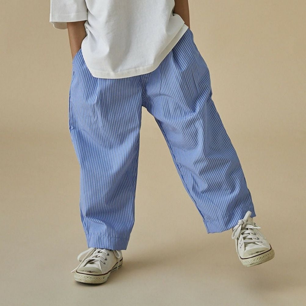 [フォブ] ストライプ1タックテーパードパンツ ブルー(BL)