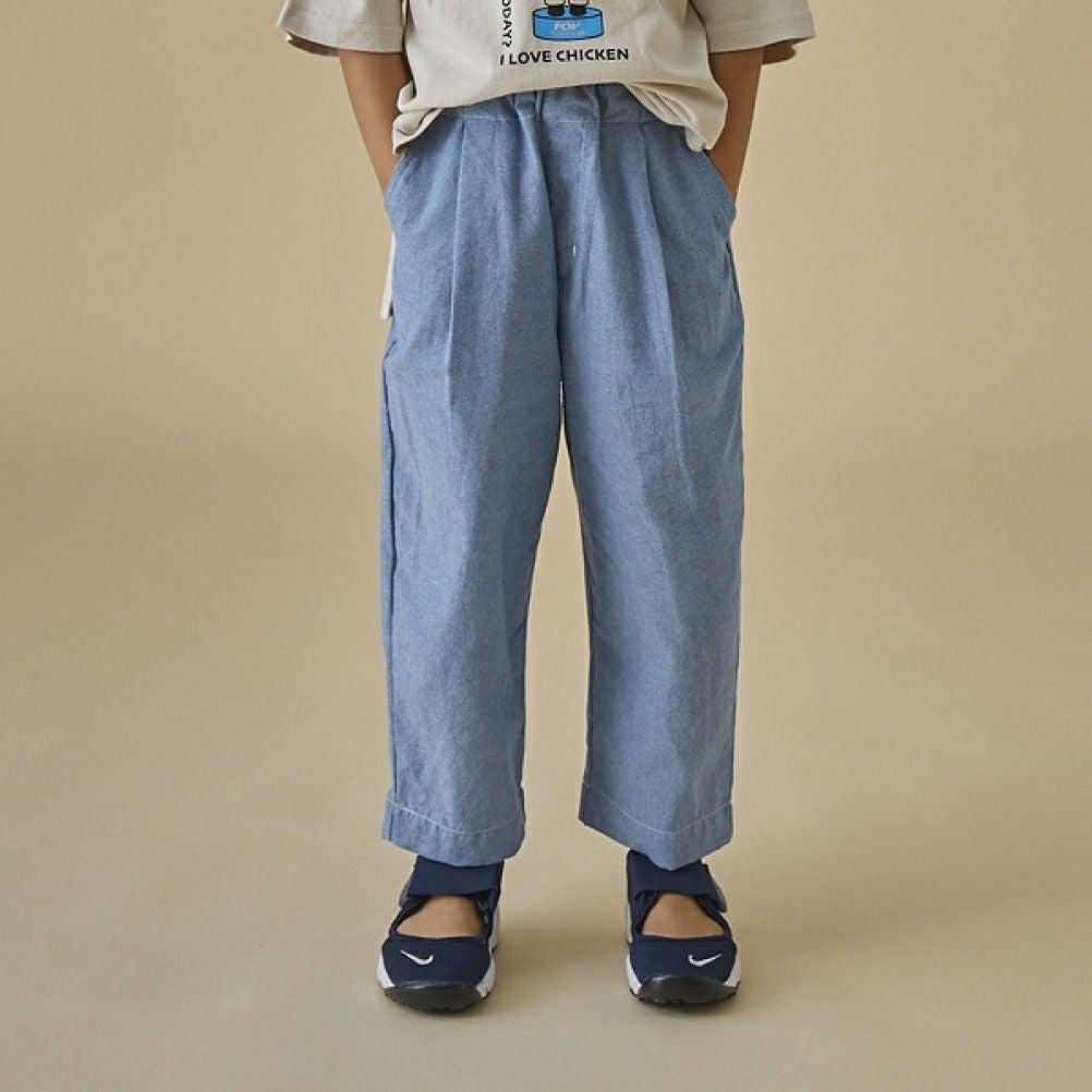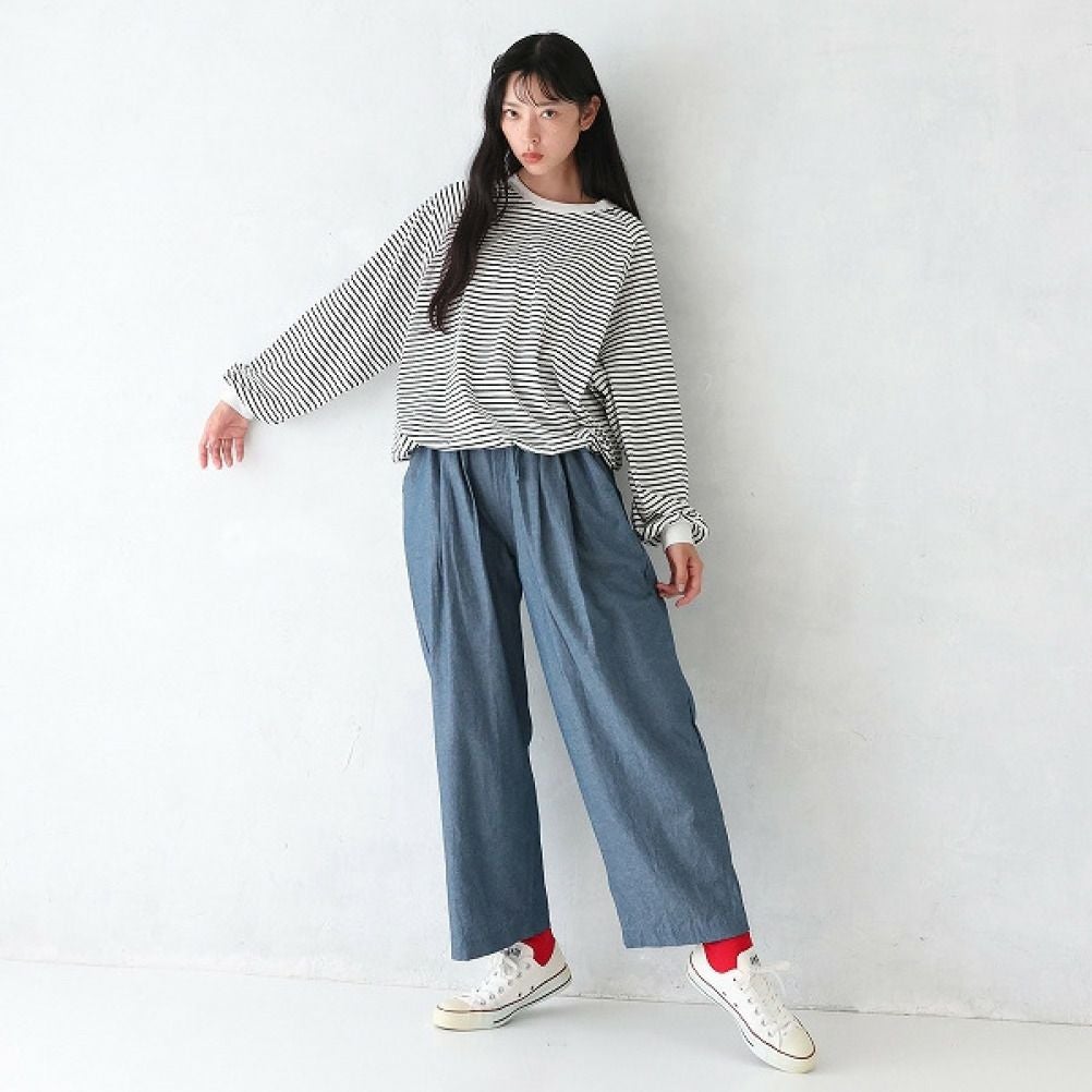 [アンディニー] ダンガリーワイドテーパードパンツ ネイビー(NV)