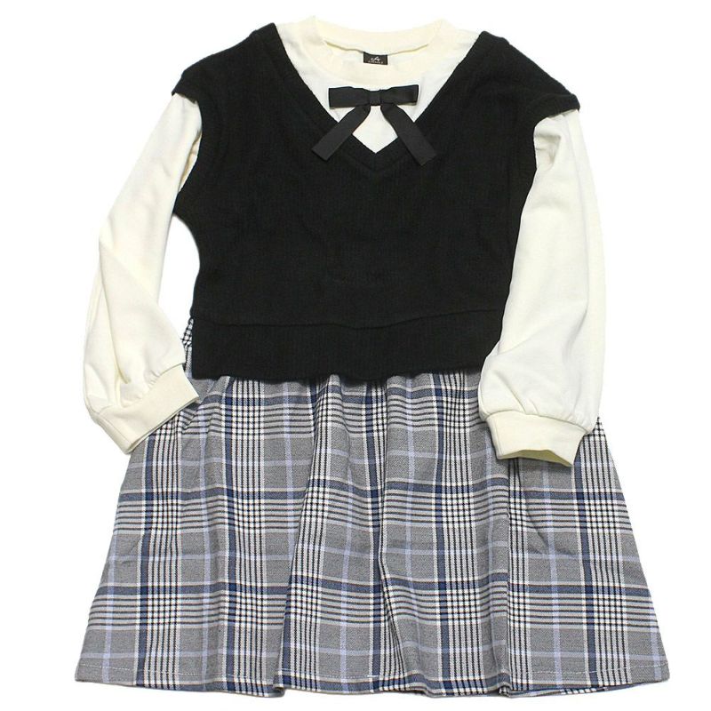 “エマーブル”のリボンチェックニットワンピース
