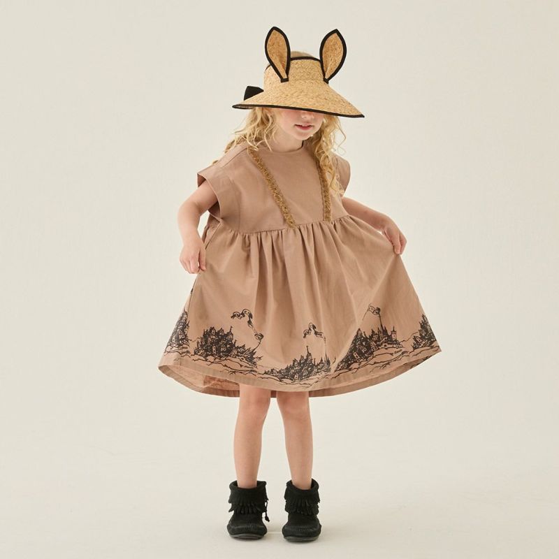 ・裾のプリントデザインが目を引くノースリーブワンピース