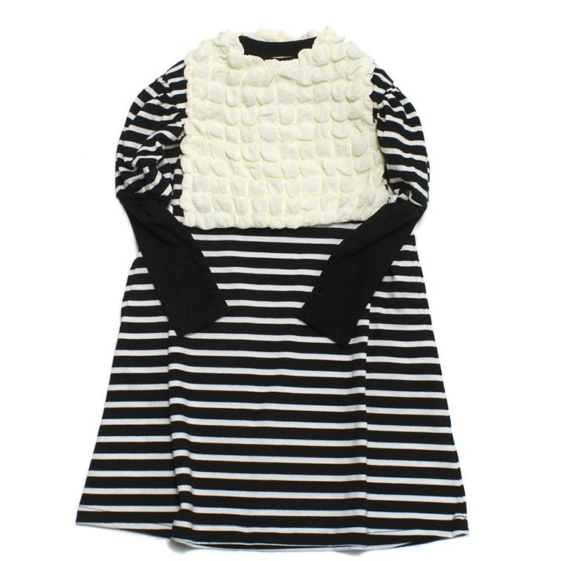 [マルーク] マリンボーダー付け衿ワンピース クロ系(24)