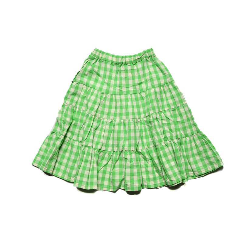 [ニードルワークス] ブロードギンガムギャザースカート ライム