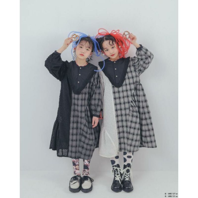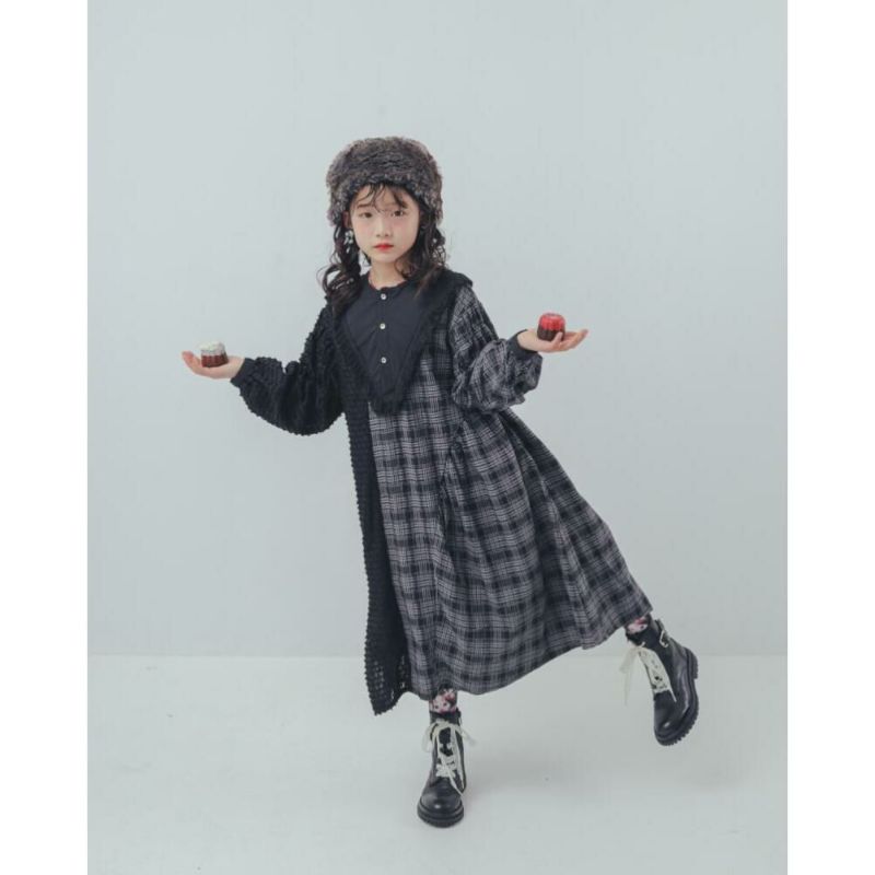 [ユニカ] 2ピースモノトーンチェック柄ワンピース ブラック(4)