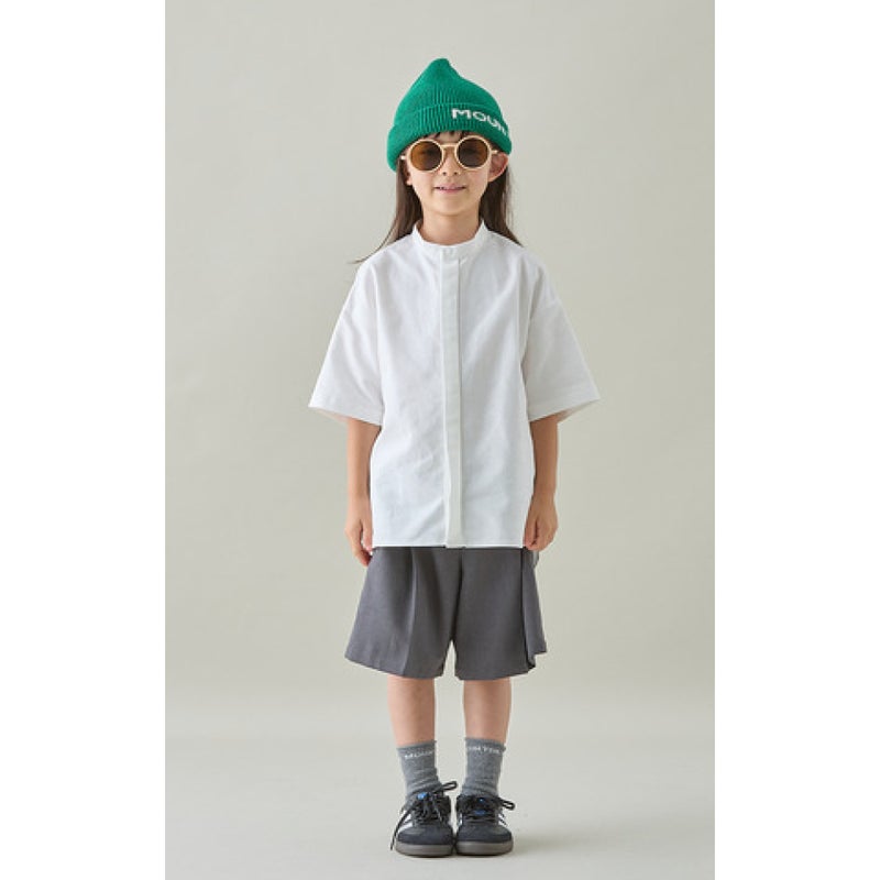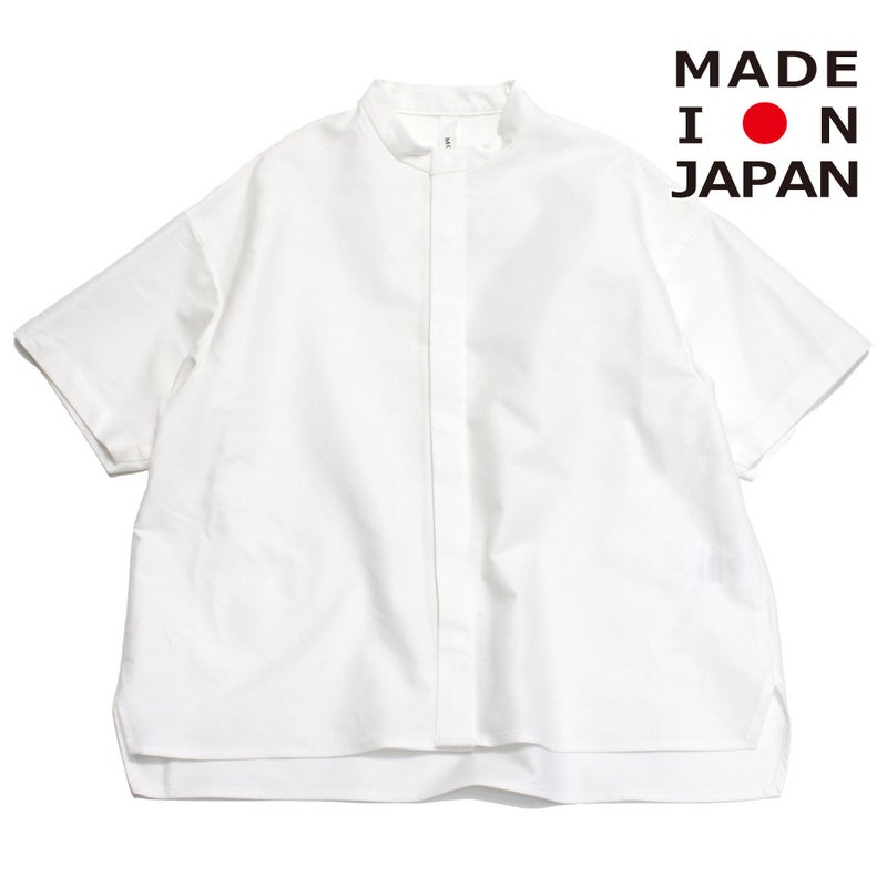 ・すっきりとした印象のバンドカラーシャツ
