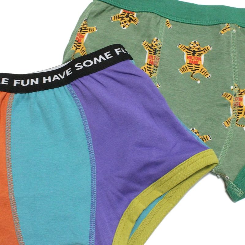・無地、総柄、チェッカー柄の3種類が1セットになったボクサーパンツ