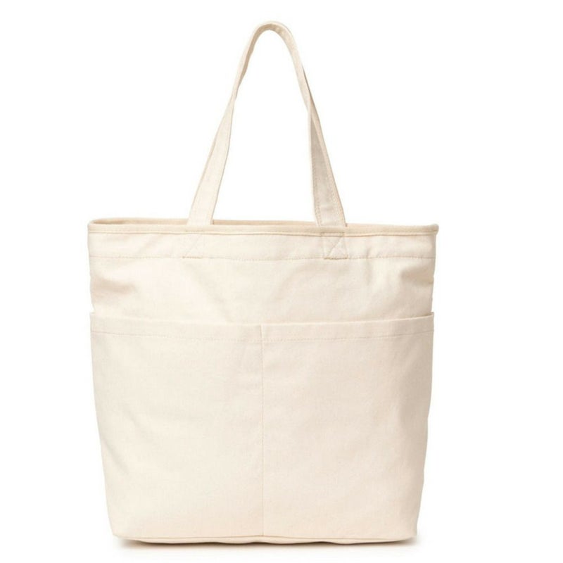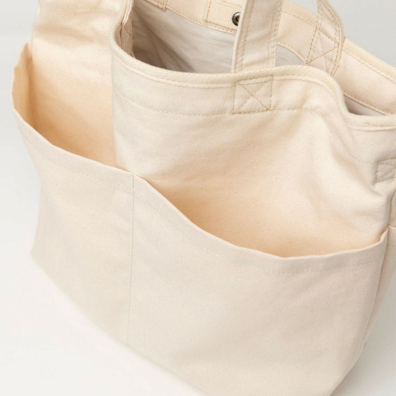 ・外側のマルチポケットが特徴的なトートバッグ