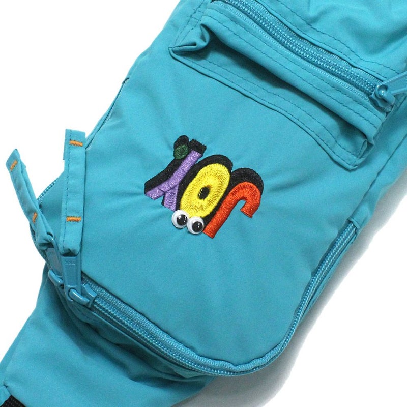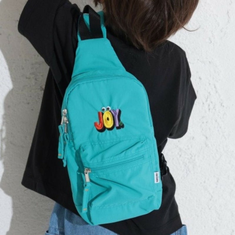 ・目玉アイコンモチーフとロゴ刺繍を組み合わせたPOPで遊び心のあるショルダーバッグ