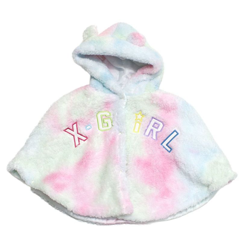 “エックスガールステージズ”のロゴ刺しゅうアップリケフラッフィーポンチョ