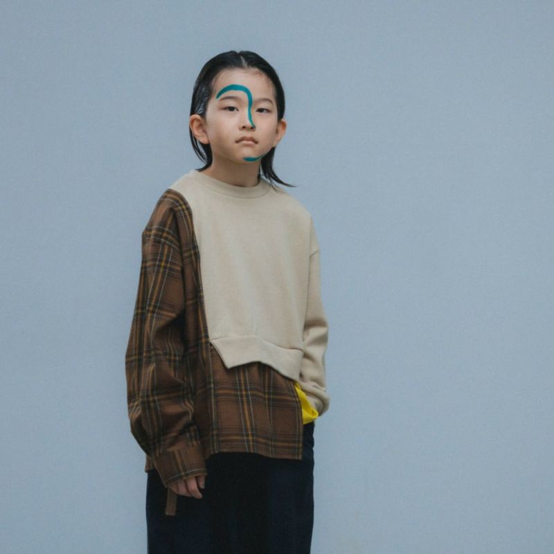 “ヌヌフォルム”のシャギーチェック切り替えT