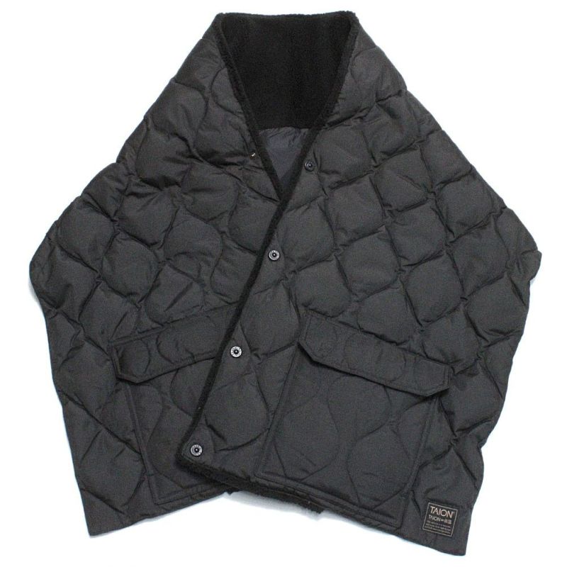 [タイオン] ミリタリー リバーシブル ダウンストール ブラック×ブラック(BXB)