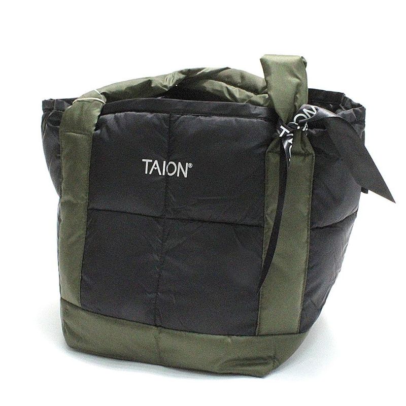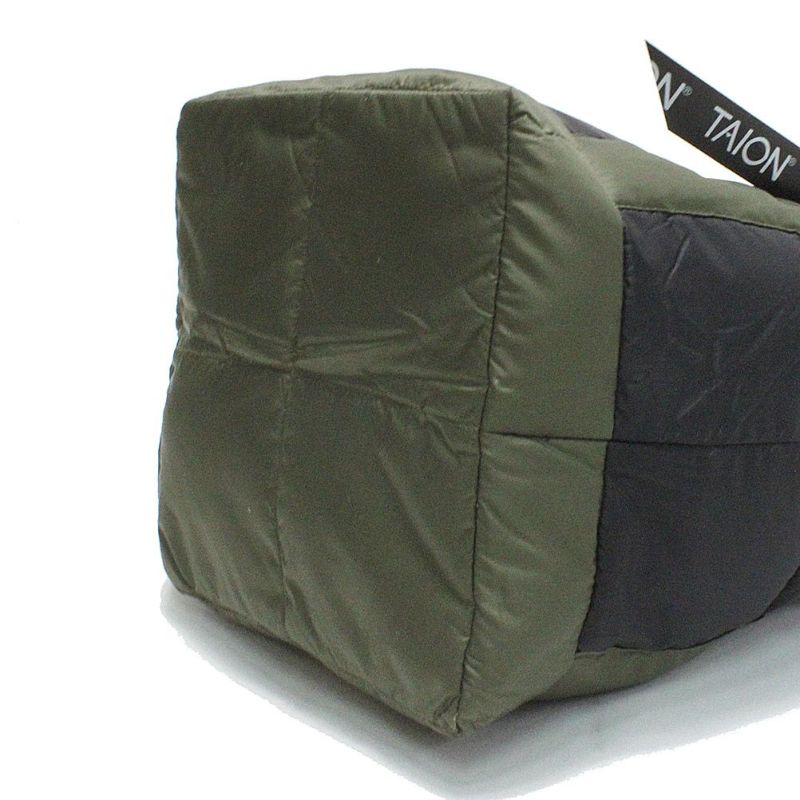 6. [タイオン] バイカラー ダウントートバッグ ブラック×ダークオリーブ(BDO)