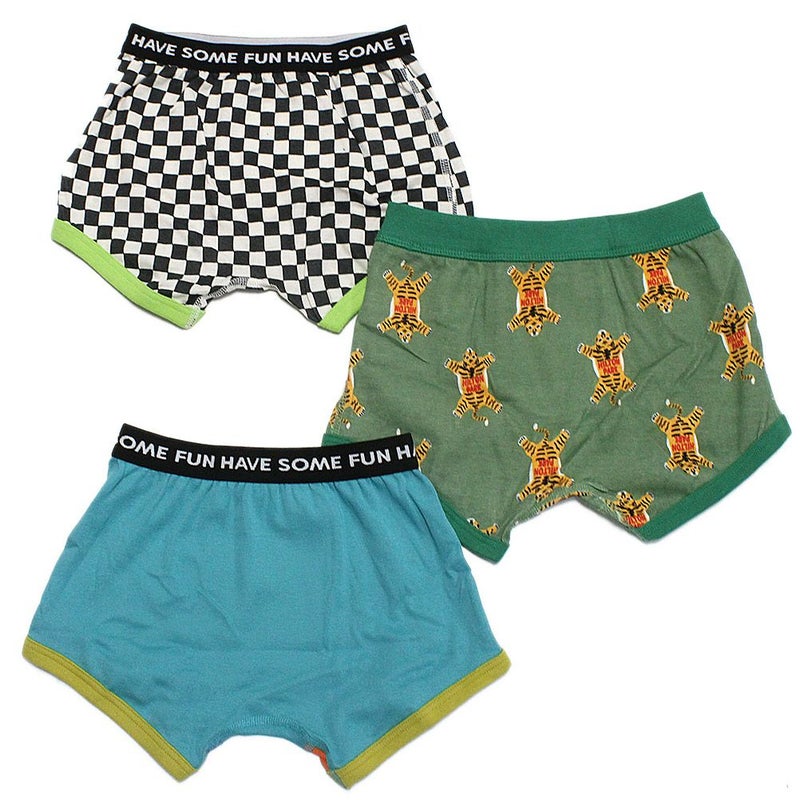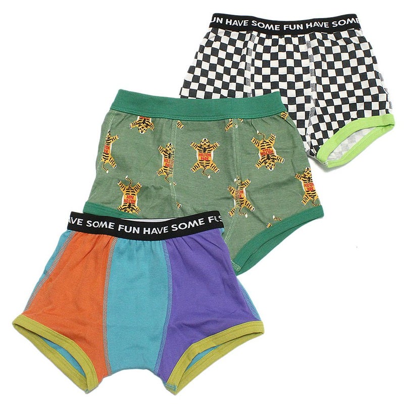 ・無地、総柄、チェッカー柄の3種類が1セットになったボクサーパンツ
