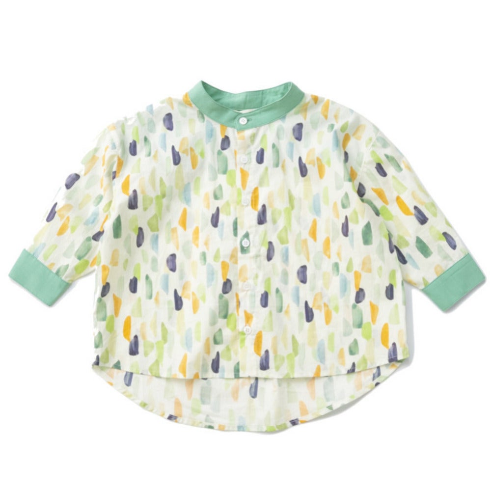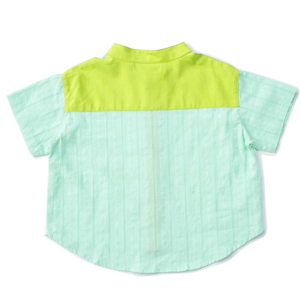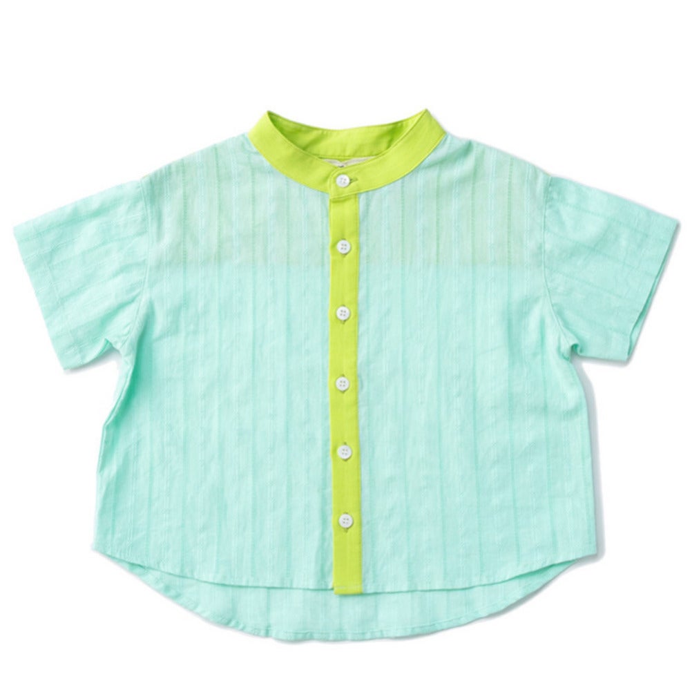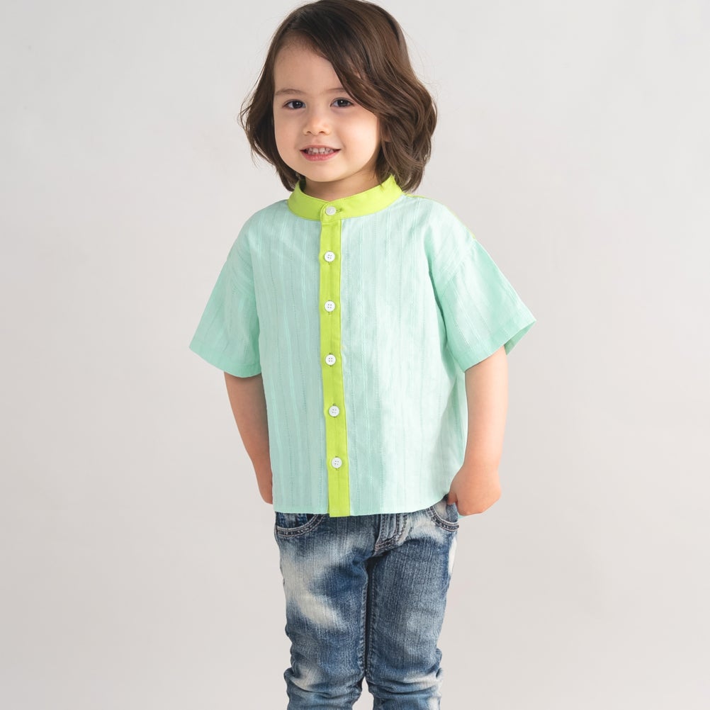 [アミアミ] バンドーカラー半袖シャツ ライトグリーン(20)