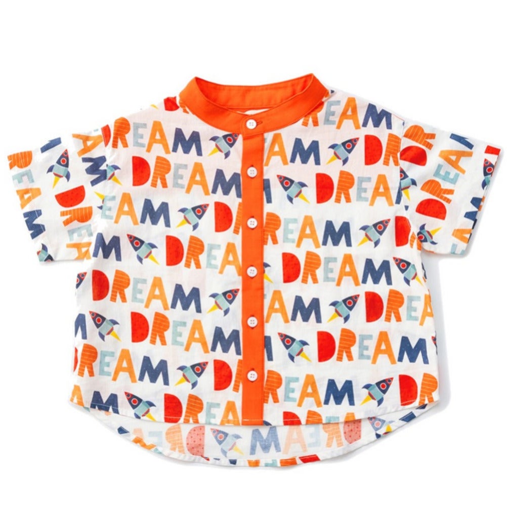 [アミアミ] バンドーカラー半袖シャツ オレンジ(37)