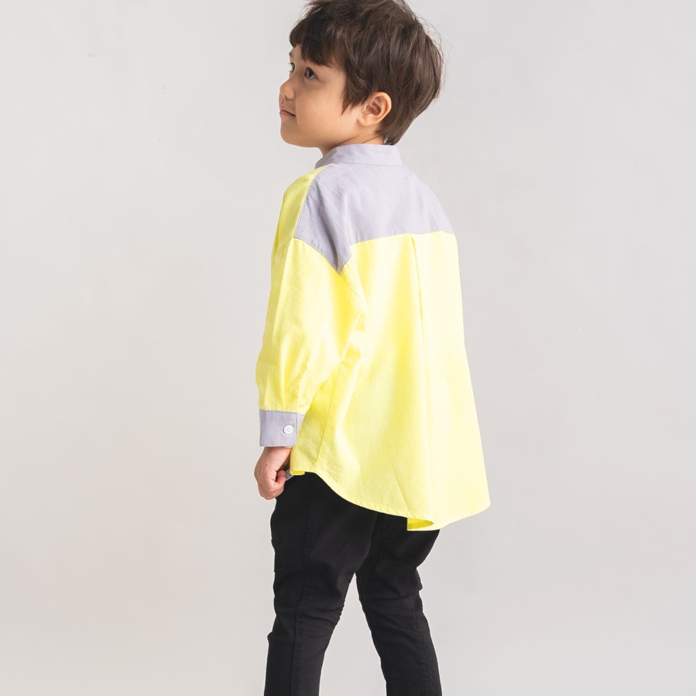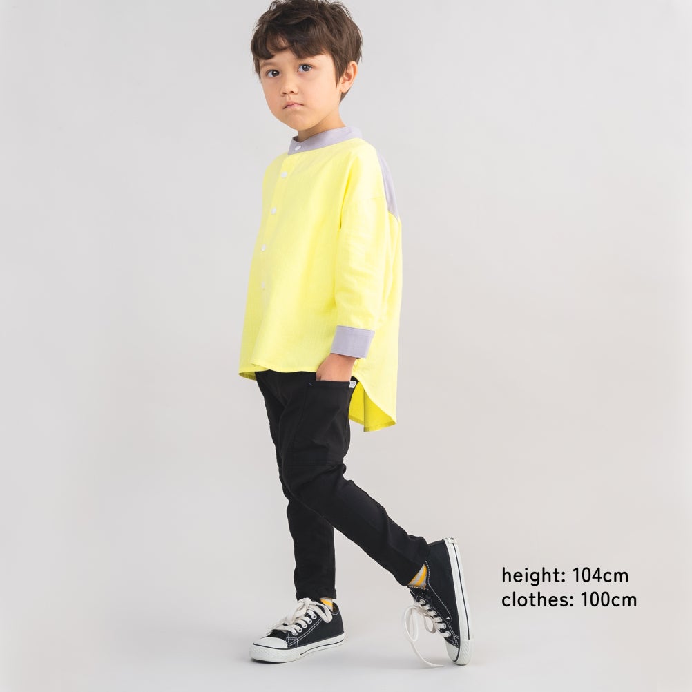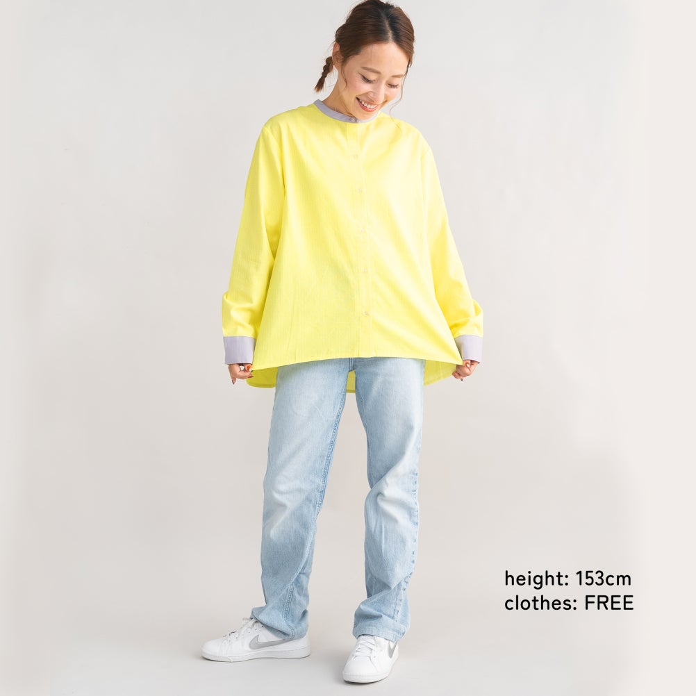 [アミアミ] バンドカラー長袖シャツ イエロー(32)