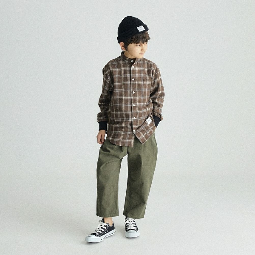 [ジェネレーター] バンドカラーシャツ チェックブラウン(CB)