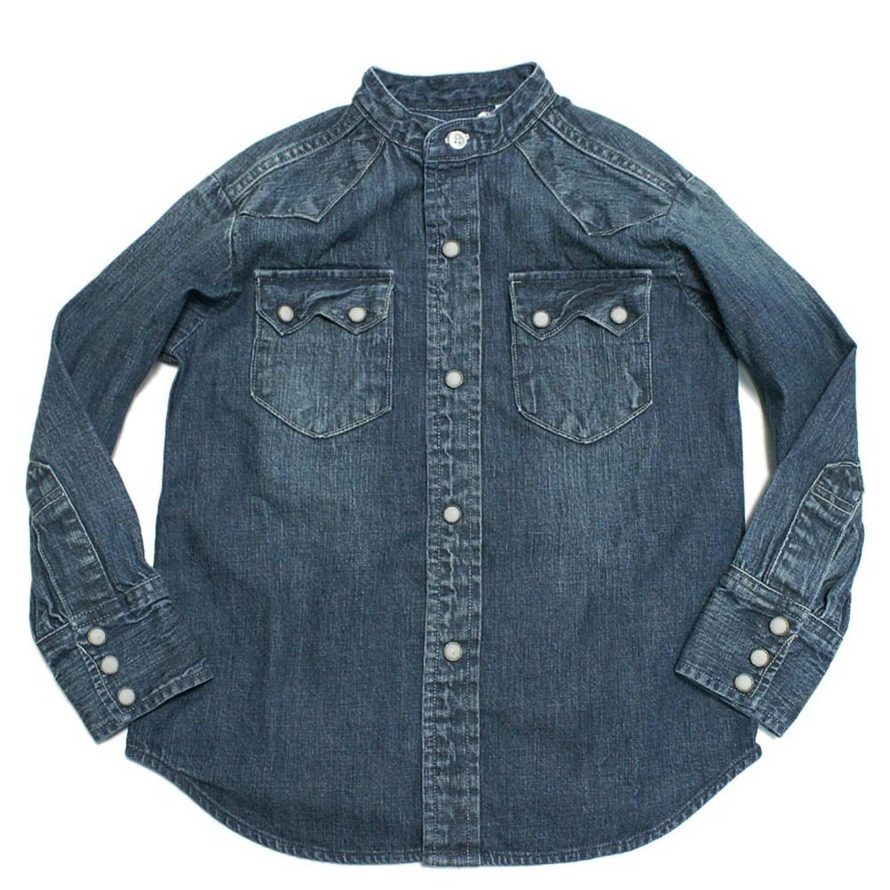 [デニムアンドダンガリー] 8OZデニム ウエスタン ノーカラー シャツ 14BLブルー