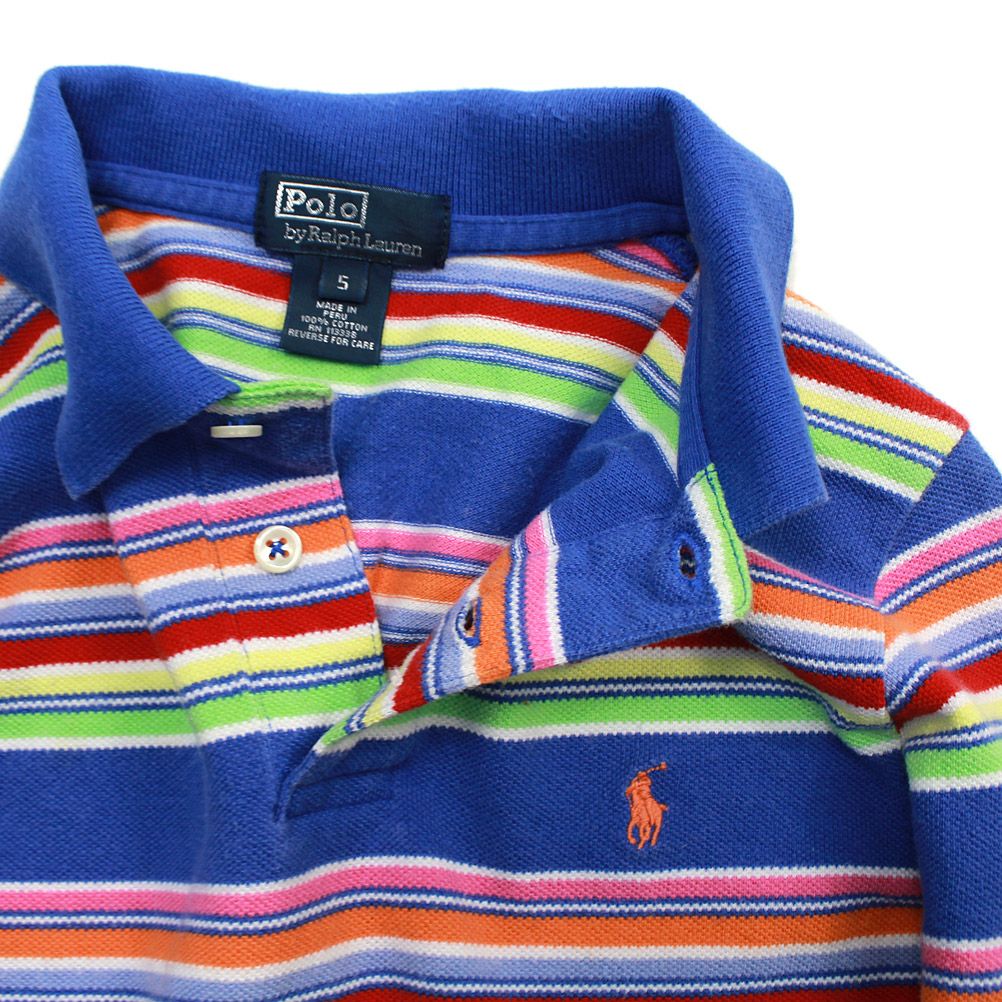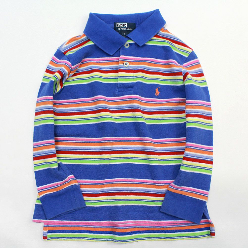 [ユーエスユーズド] Polo by RalphLauren ラルフローレン 長袖 マルチボーダー ポロシャツ  レインボー