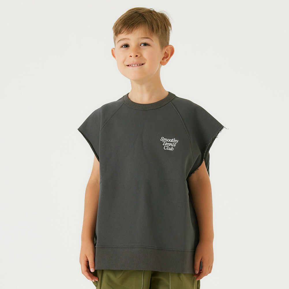 [スムージー] ノースリーブカットオフスウェット チャコール