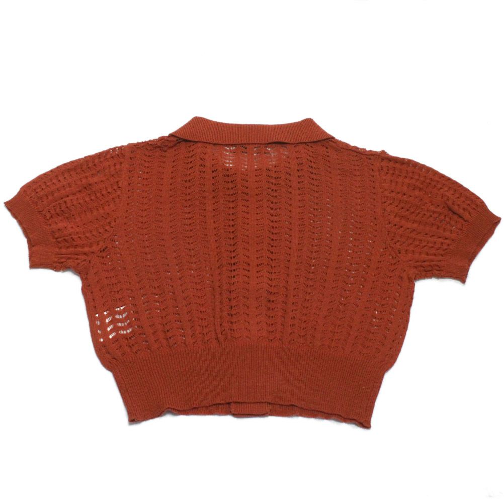 [オーシャン&グラウンド] アイレット編み衿付き5分袖カーディガン レッド(RE)