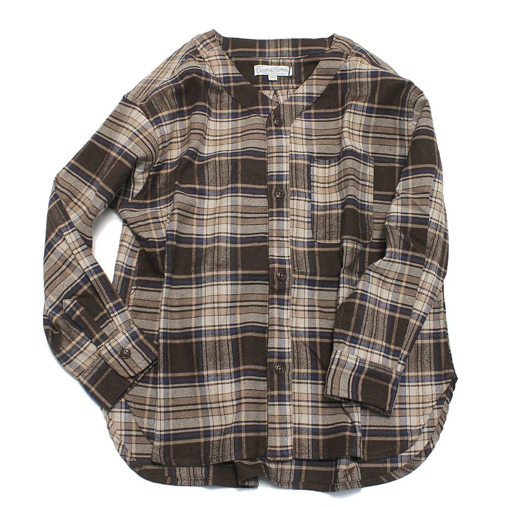 [オーシャン&グラウンド] チェックカーディガンシャツ ブラウン(BR)