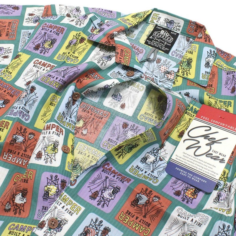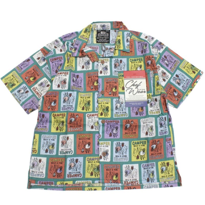 ・暑い日に着たくなるカラフルな総柄の半袖シャツ