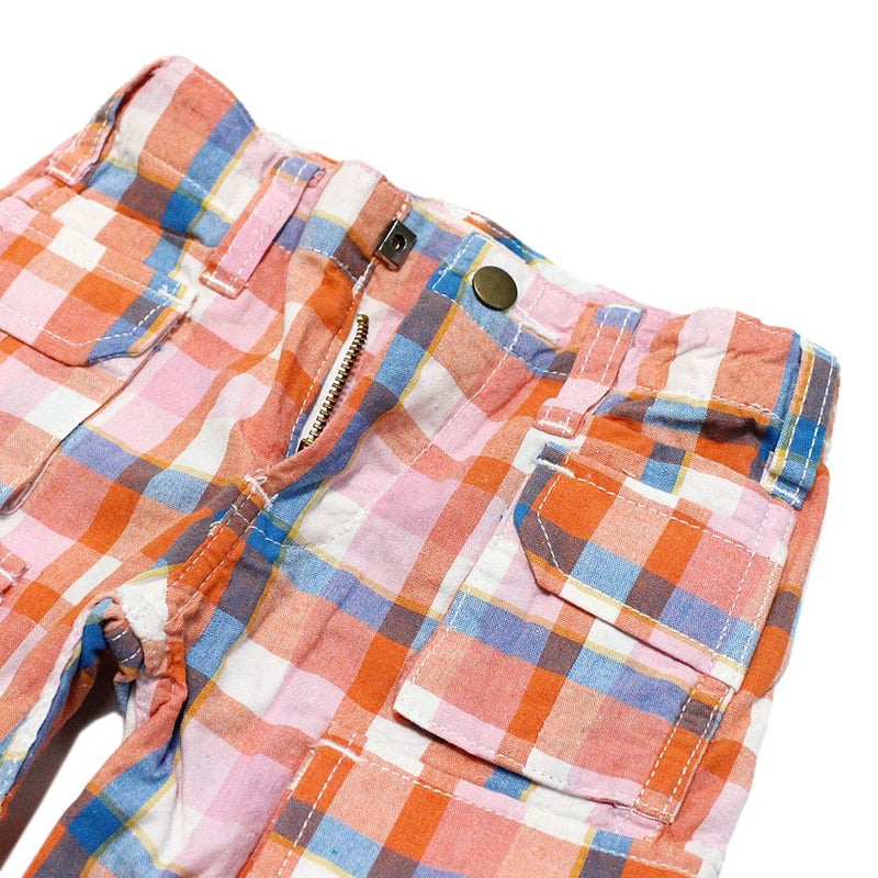 ・カラフルなチェック柄が目を惹くカーゴパンツ