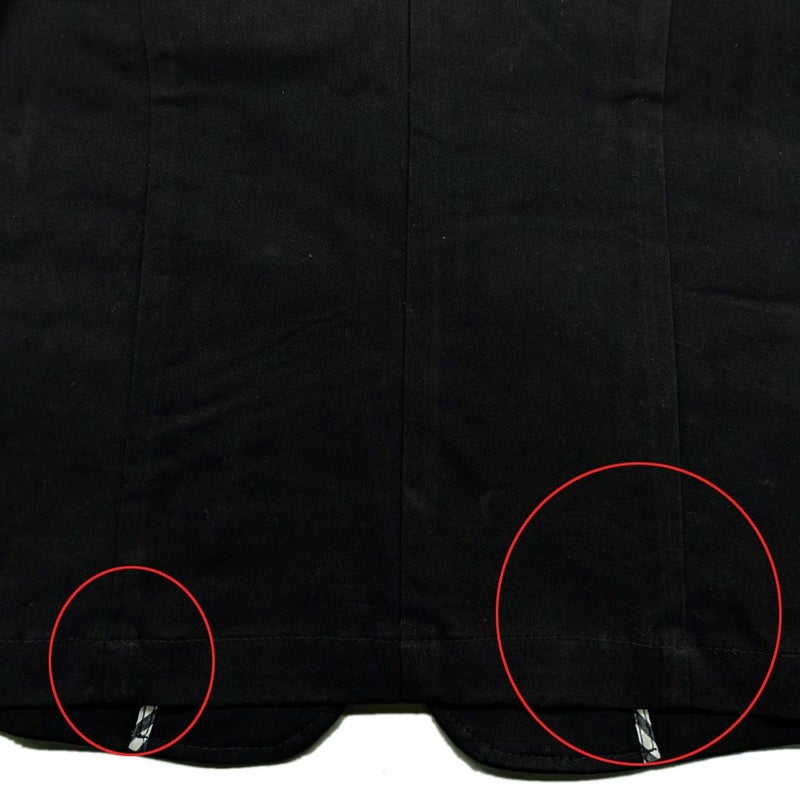 8枚目の写真(赤丸部分)の様に、製造過程でアタリ(生地が押されて平らになり光が反射する現象)や折り畳み跡が所々に発生しております。この現象は生地の特性上、やむを得ず発生致します。