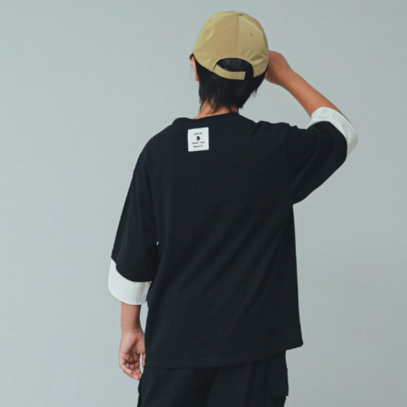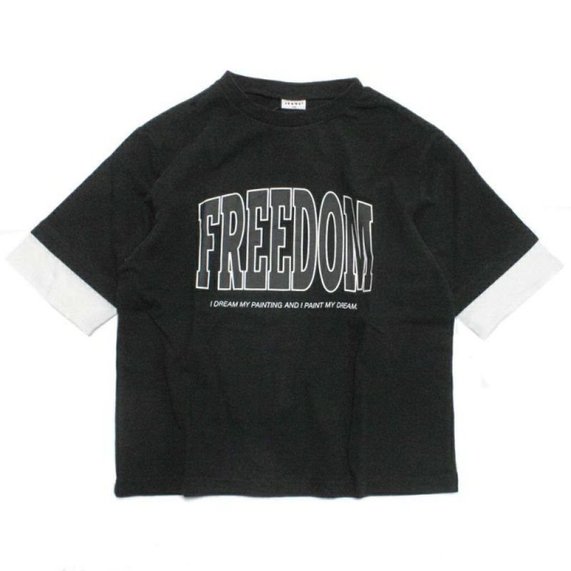 ・レイヤード風デザインの6分袖T
