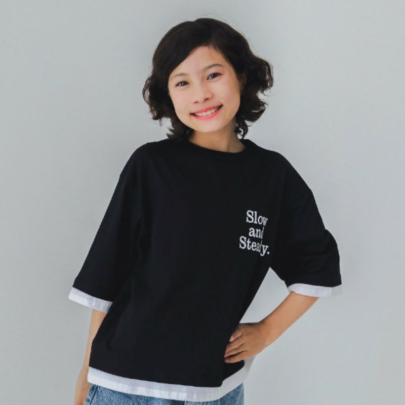 ・重ね着風デザインのレイヤードTシャツ