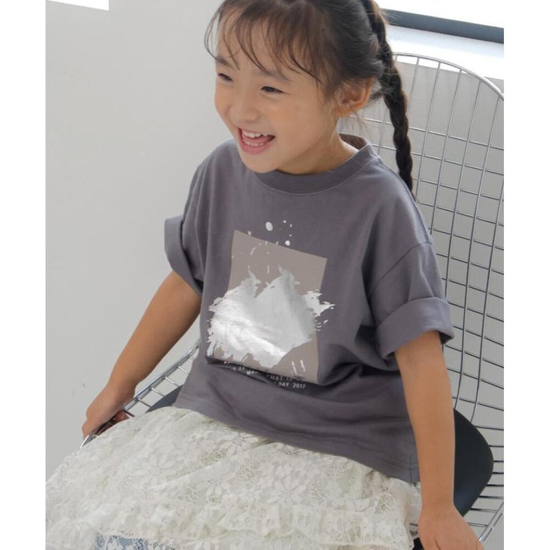 ・上品に輝く箔プリントが目を惹くTシャツ
