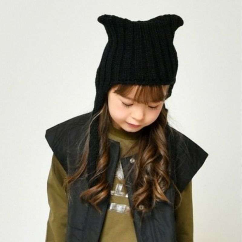 [ニードルワークス] 【NeWo】ネコ耳ニットキャップ ブラック