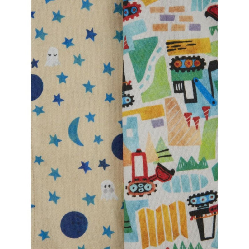 ・手描きタッチの夜空に浮かんだお化け柄と、カラフルな働く車柄の2柄展開