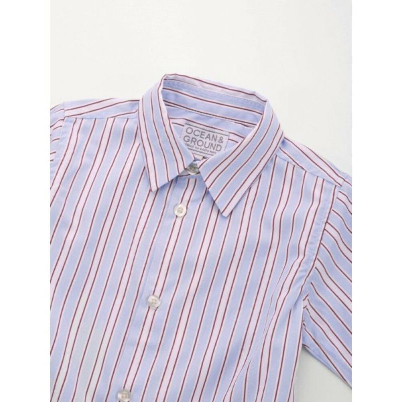 [オーシャン&グラウンド] ストライプシャツ ライトブルー(LB)
