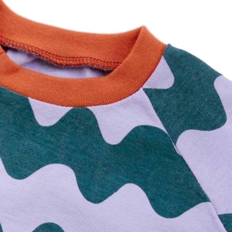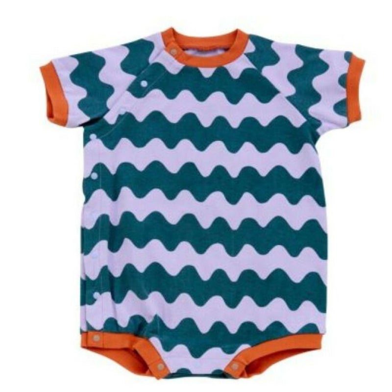 ・カラフルな総柄デザインが目を惹くロンパース