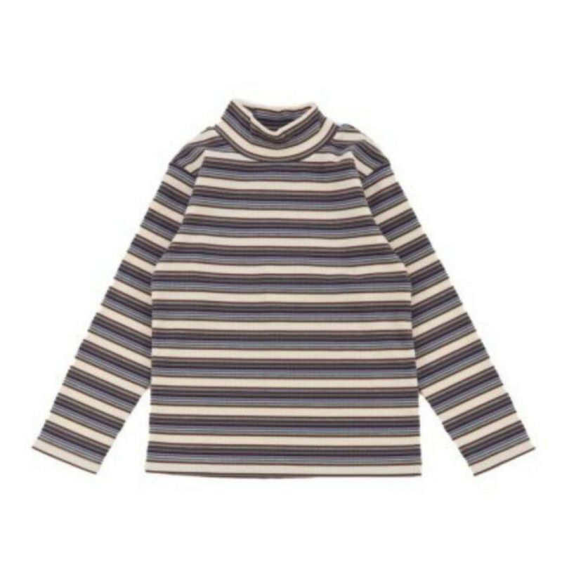 6. [オーシャン&グラウンド] タートルネックボーダーリブTシャツ マルチカラー(XX)