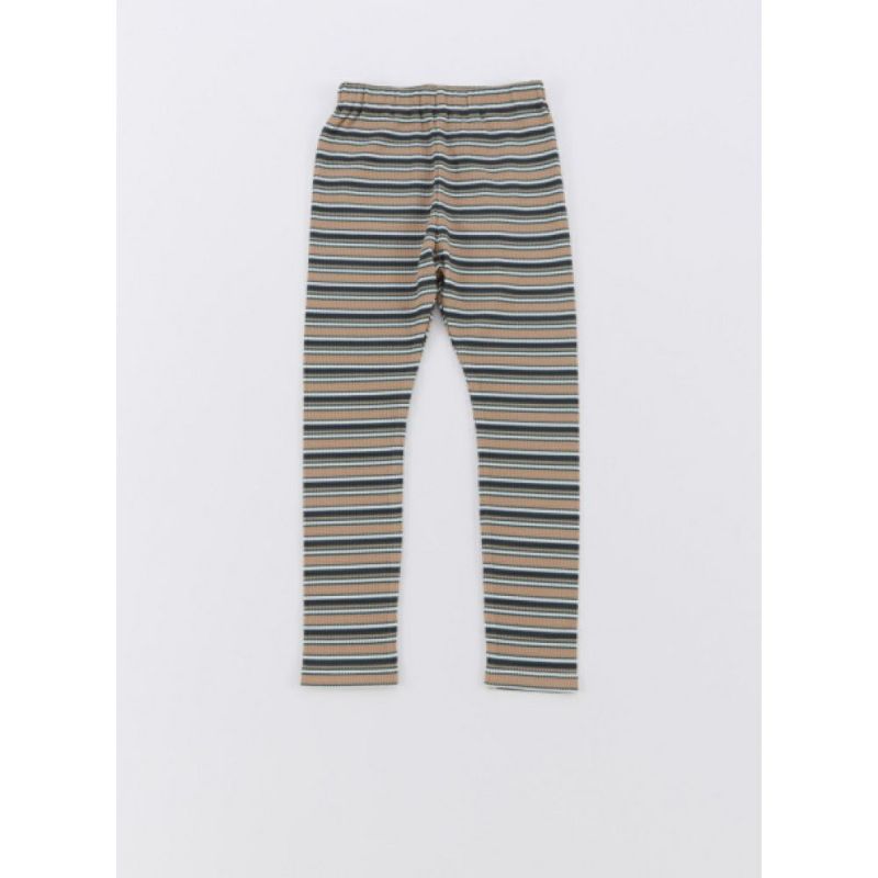 3. [オーシャン&グラウンド] ストレッチワッフルボーダーレギンス ベージュ(BE)
