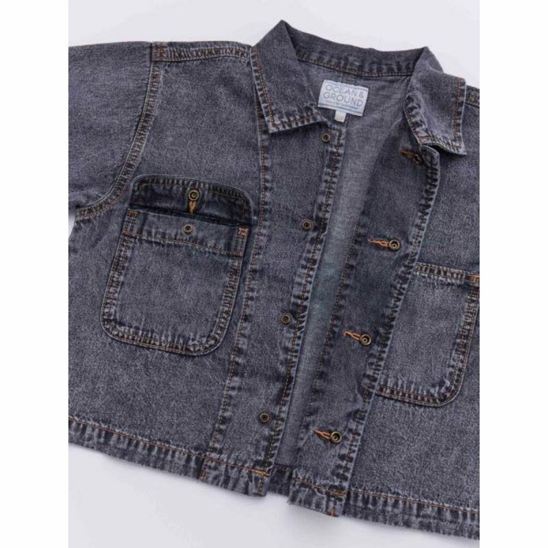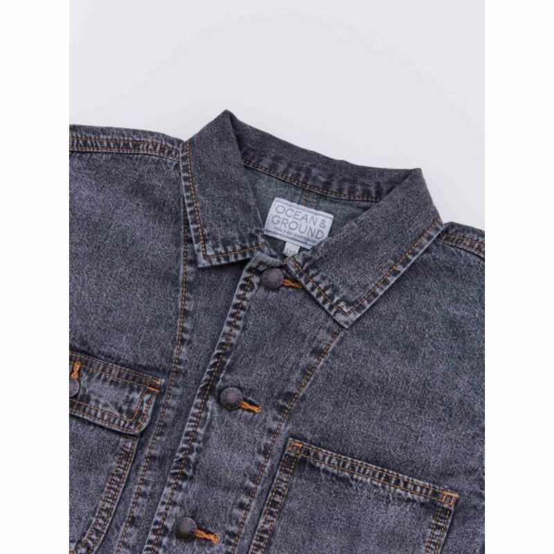 [オーシャン&グラウンド] デニムカバーオールJKT ブラック(BK)
