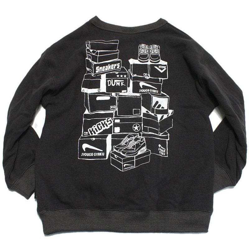 ・スニーカーをモチーフにしたイラストをバックにプリント
