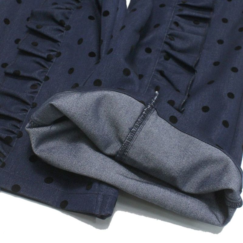 5. [ユニカ] フロッキードットフリルワイドパンツ ネイビー(5)
