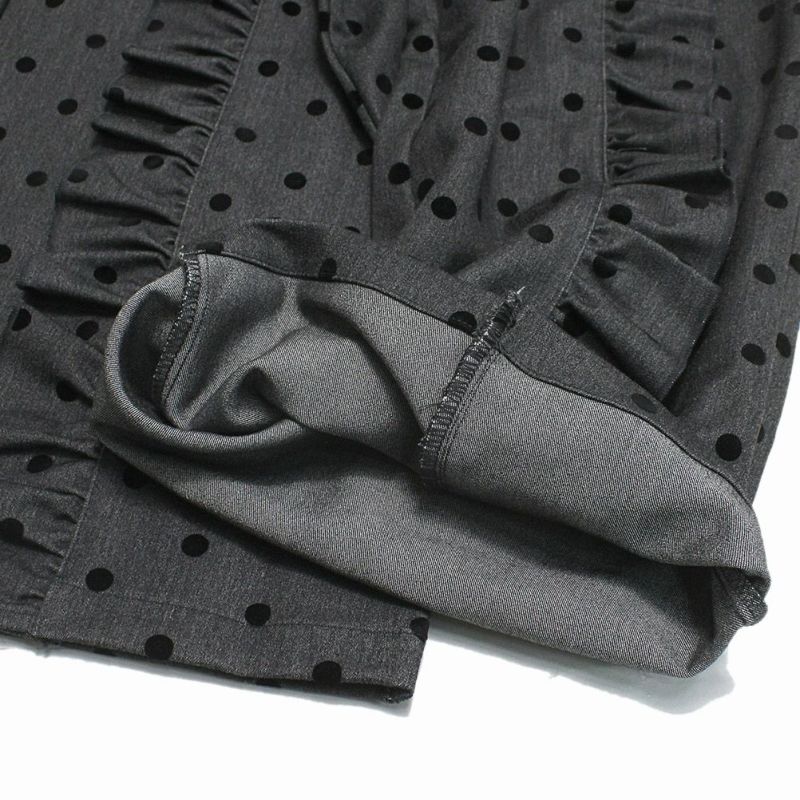 6. [ユニカ] フロッキードットフリルワイドパンツ グレー(13)