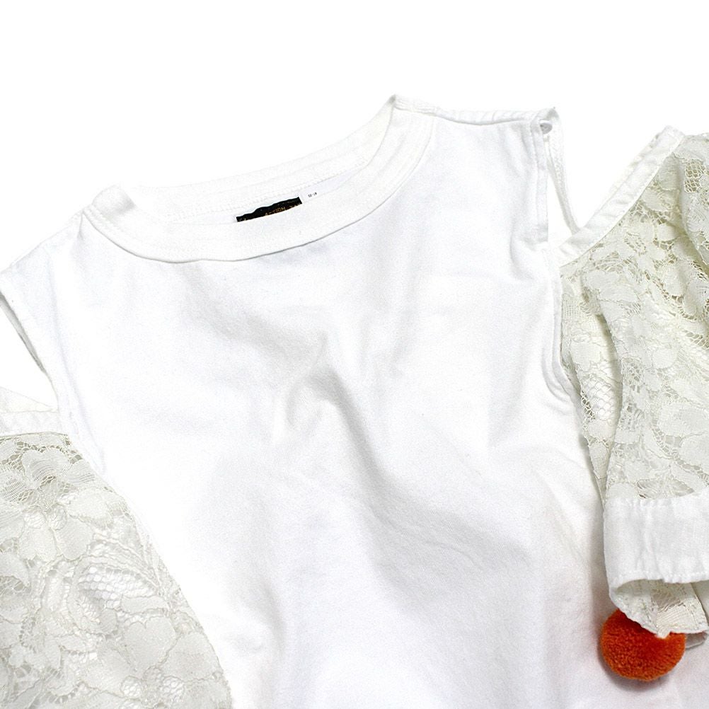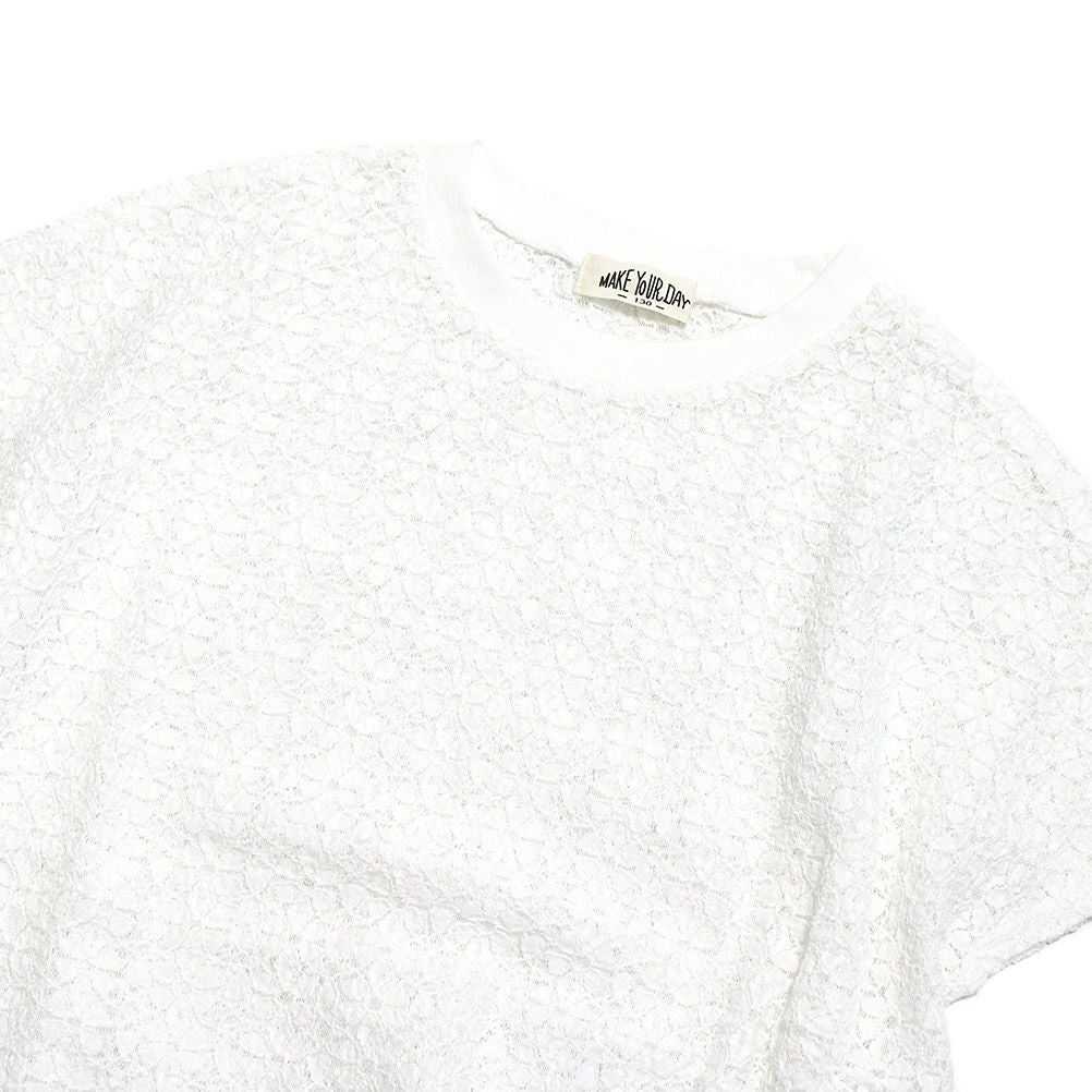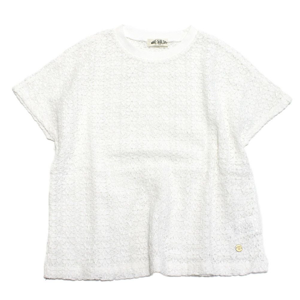 [メイクユアデイ] フラワーレースフレンチTシャツ オフホワイト(OW)