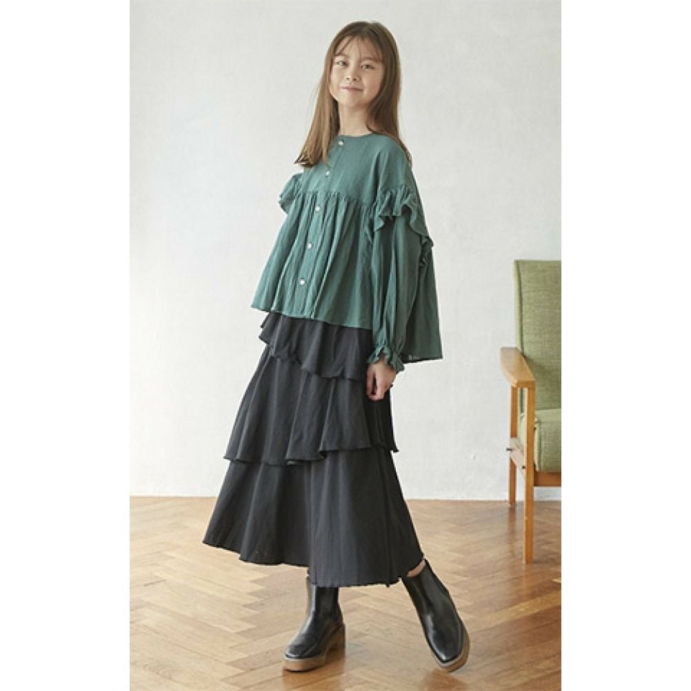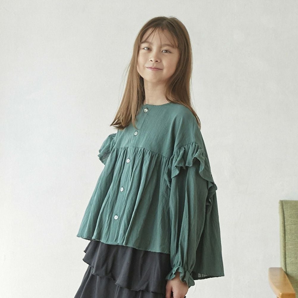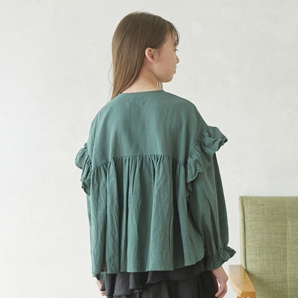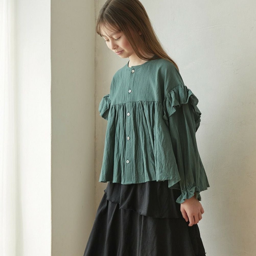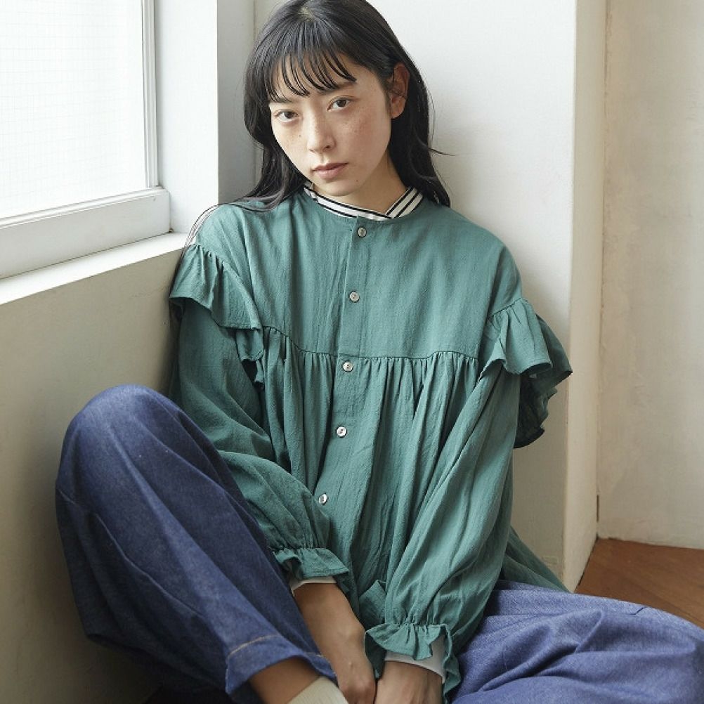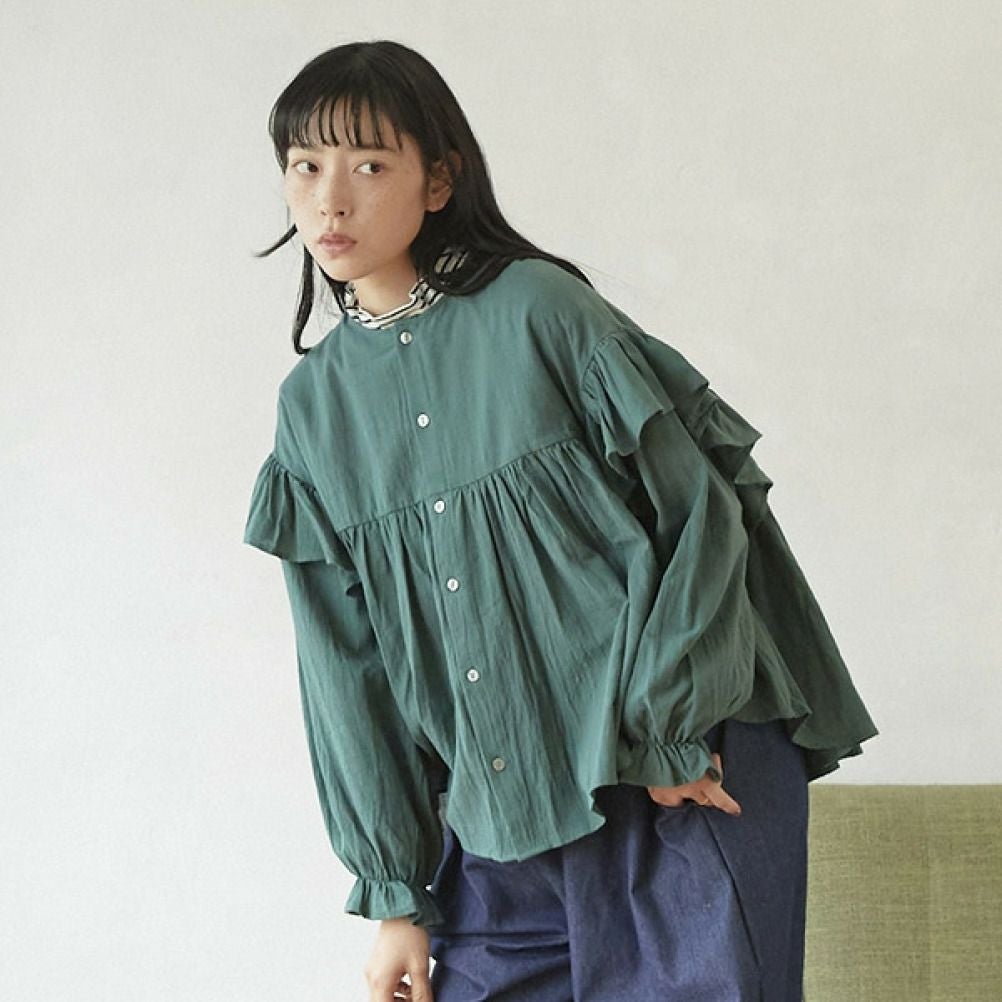 [アンディニー] 袖フリルブラウス グリーン(GN)