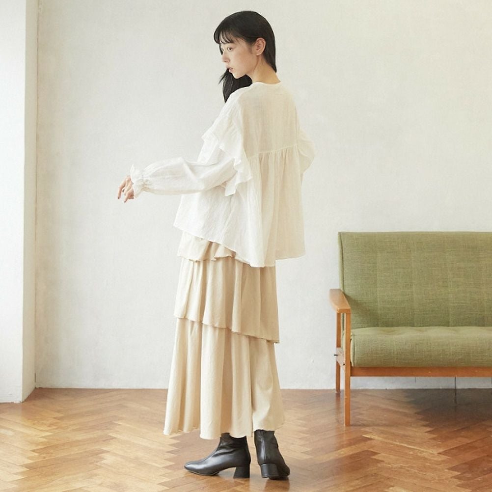 [アンディニー] 袖フリルブラウス ホワイト(WH)
